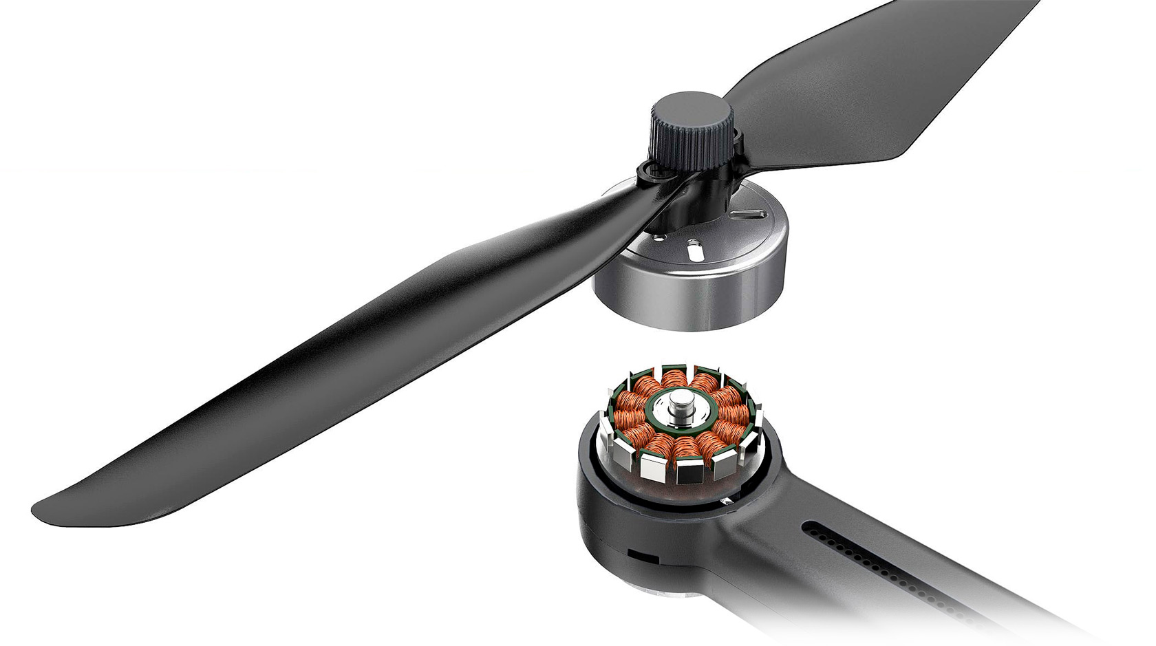 Мощные бесколлекторные моторы 1306, 2750KV и GPS модуль обеспечивают скорость дрона до 40 км/час и 4 уровень сопротивления ветру.