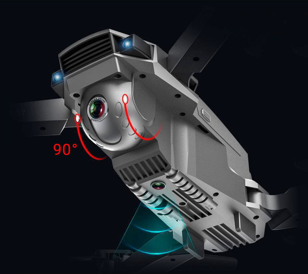 Умный дрон с GPS модулем и дальностью полета 500 м. Оборудован 4К камерой с регулировкой угла на 90°.